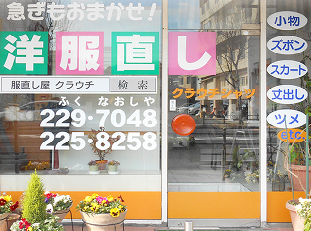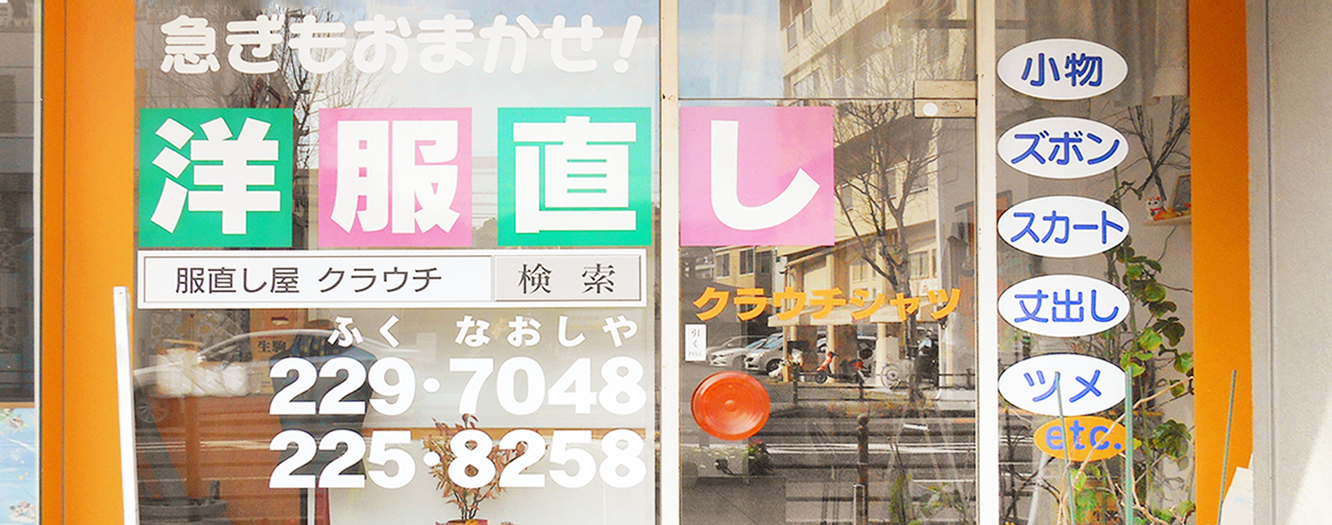 服直し屋クラウチは、鹿児島市草牟田にある洋服リフォーム・リペアの専門店です。サイズ直し、ほつれの補修、デザイン変更など、お洋服のあらゆるお直しに対応しています。